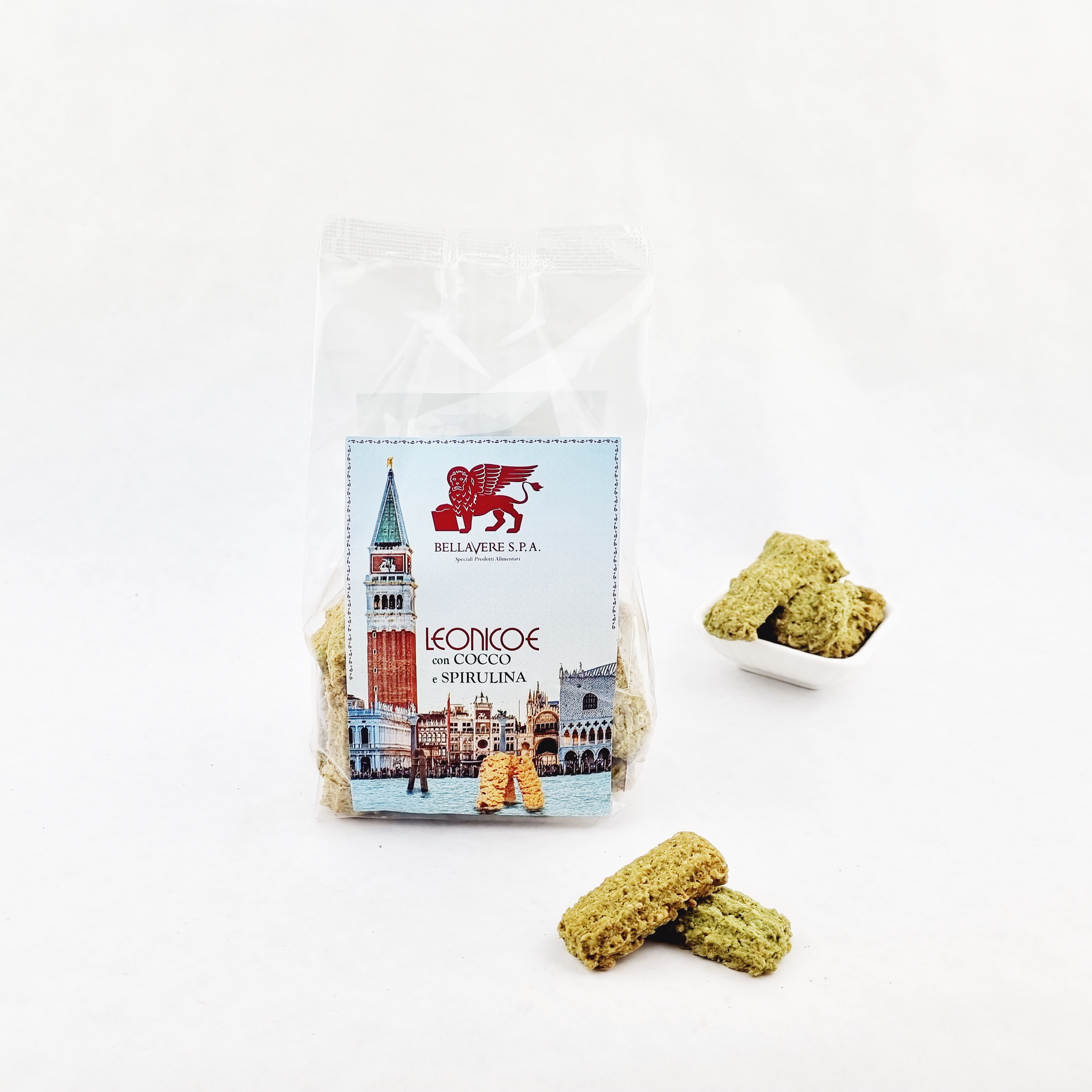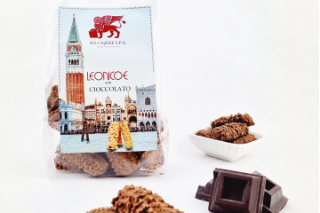 Leonicoe al cioccolato è un prodotto artigianale nato per esaltare la nota intensa del cacao abbinata alla dolcezza delle gocce di cioccolato. La farina integrale conferisce inoltre una buona consistenza e croccantezza.